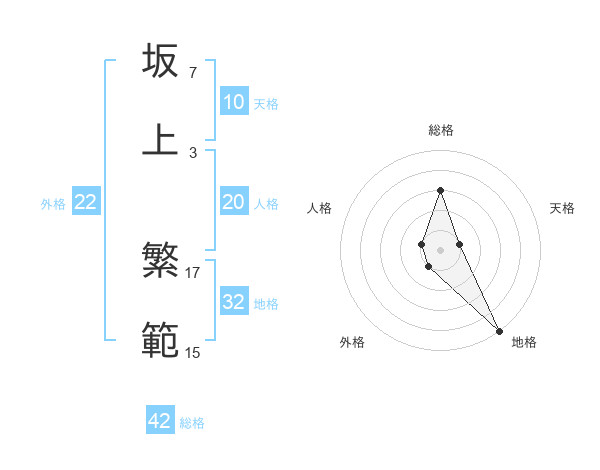 坂上 繁範さんを姓名の画数から五運を鑑定