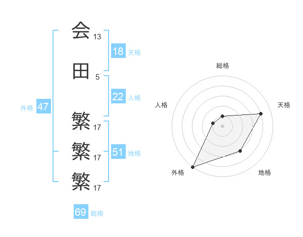会田 繁繁繁さんの外格は47画の5点!