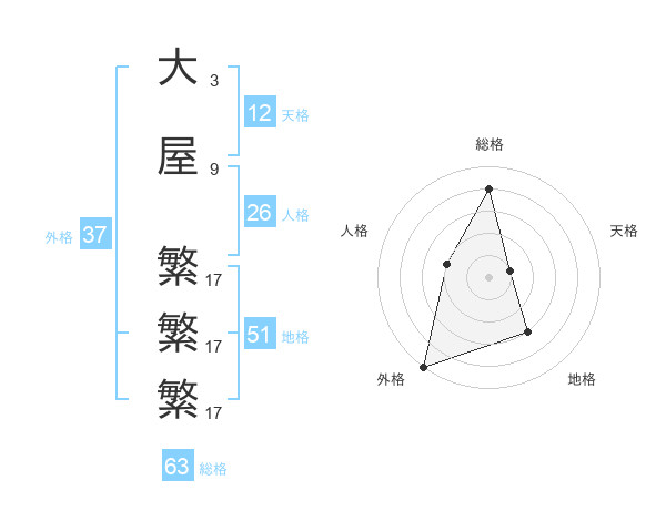 大屋 繁繁繁さんの外格は37画の5点!