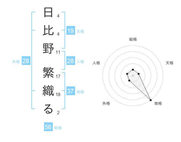 日比野 繁織るさんを姓名の画数から五運を鑑定