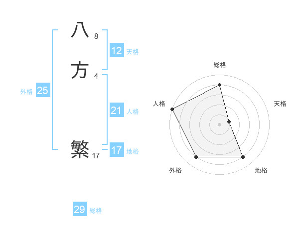 八方 繁さんの総格は29画の4点!