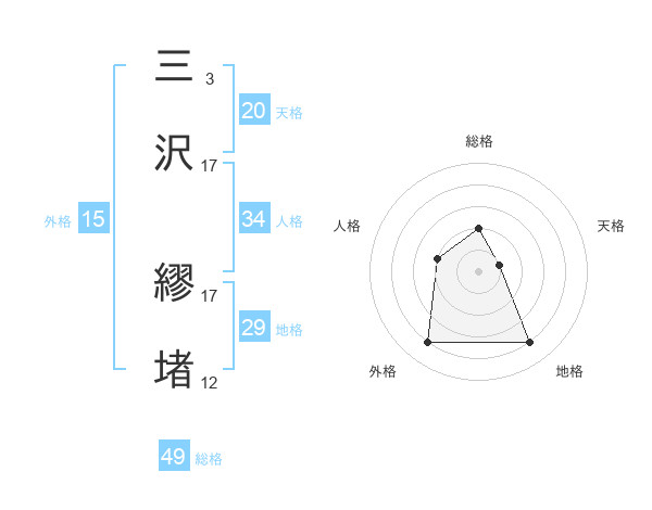 三沢 繆堵さんを姓名の画数から五運を鑑定