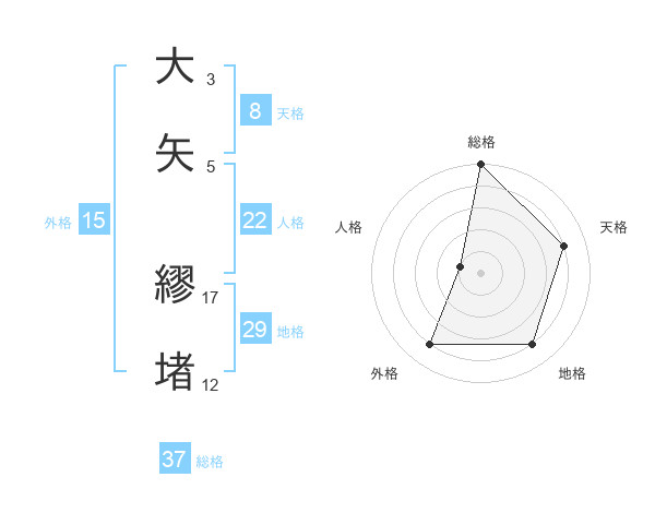 大矢 繆堵さんの総格は37画の5点!