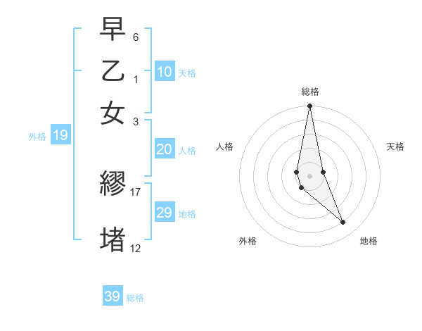 早乙女 繆堵さんを姓名の画数から五運を鑑定