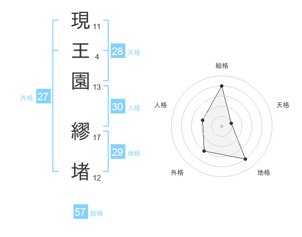 現王園 繆堵さんを姓名の画数から五運を鑑定