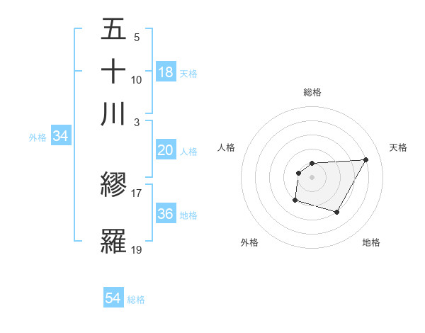 五十川 繆羅さんを姓名の画数から五運を鑑定