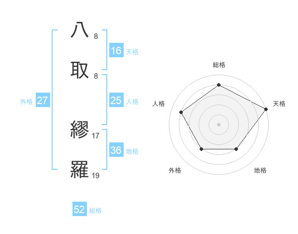 八取 繆羅さんの総格は52画の4点!