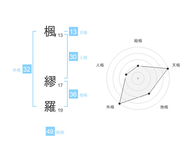 楓 繆羅さんを姓名の画数から五運を鑑定