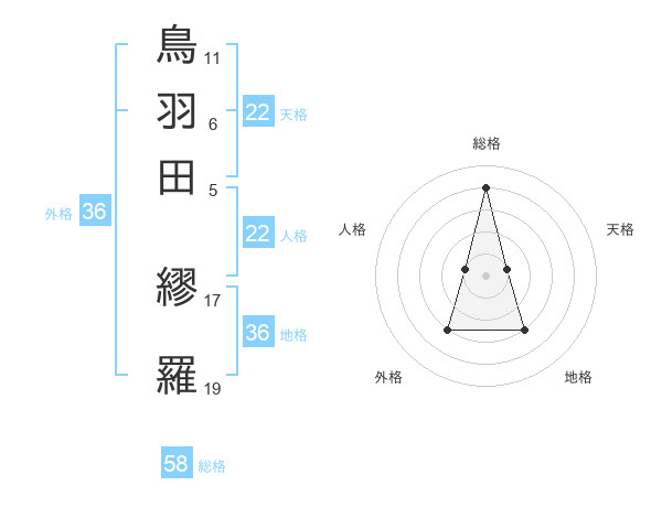 鳥羽田 繆羅さんを姓名の画数から五運を鑑定