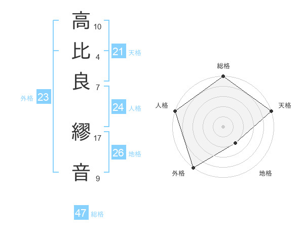 高比良 繆音さんを姓名の画数から五運を鑑定