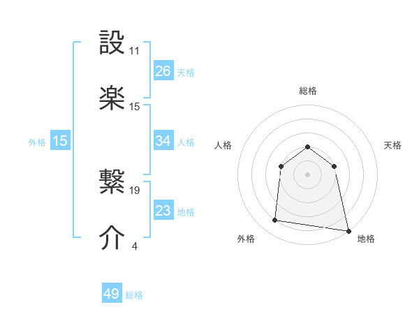 設楽 繋介さんを姓名の画数から五運を鑑定