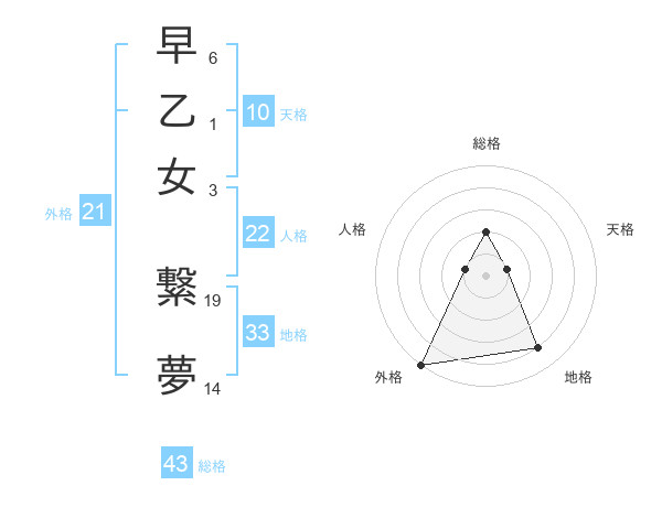 早乙女 繋夢さんを姓名の画数から五運を鑑定