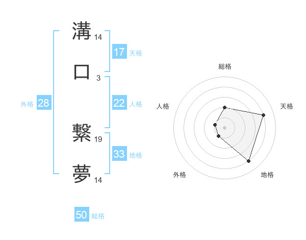 溝口 繋夢さんの総格は50画の2点!