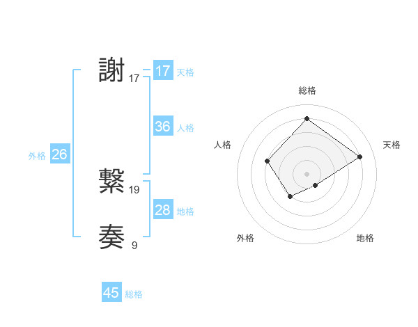 謝 繋奏さんの総格は45画の4点!