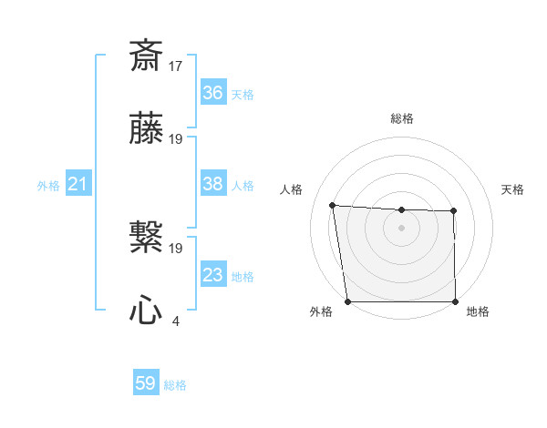 斎藤 繋心さんの総格は59画の1点!