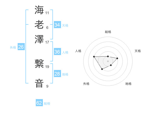 海老澤 繋音さんの総格は62画の1点!