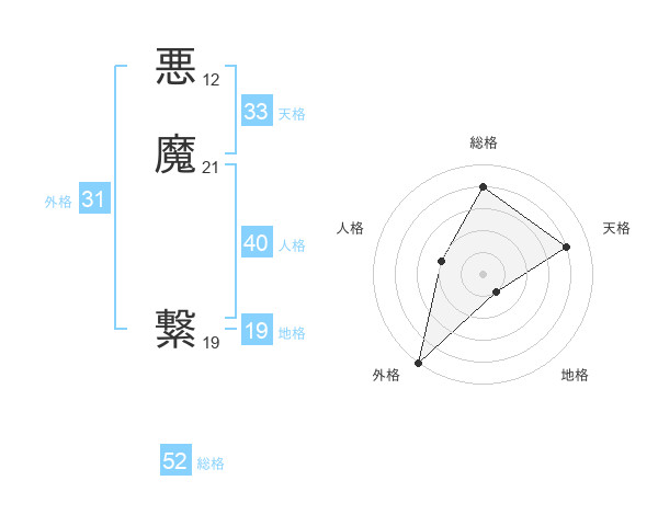 悪魔 繋さんの総格は52画の4点!