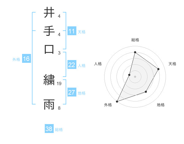 井手口 繍雨さんを姓名の画数から五運を鑑定