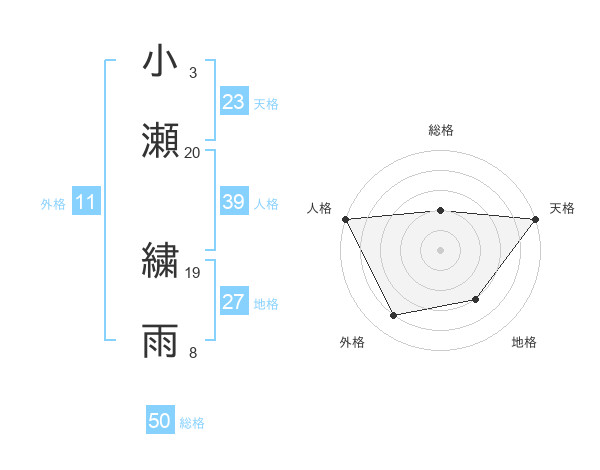小瀬 繍雨さんの天格は23画の5点!