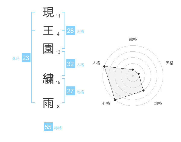 現王園 繍雨さんを姓名の画数から五運を鑑定