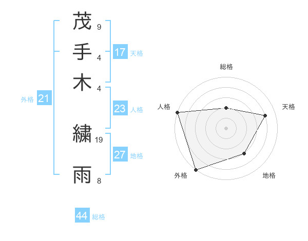 茂手木 繍雨さんを姓名の画数から五運を鑑定