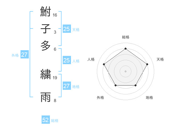 鮒子多 繍雨さんを姓名の画数から五運を鑑定