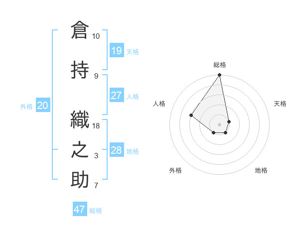 倉持 織之助さんを姓名の画数から五運を鑑定