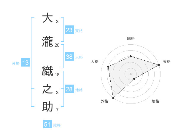 大瀧 織之助さんを姓名の画数から五運を鑑定