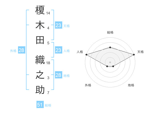 榎木田 織之助さんを姓名の画数から五運を鑑定