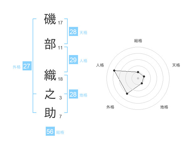 磯部 織之助さんを姓名の画数から五運を鑑定
