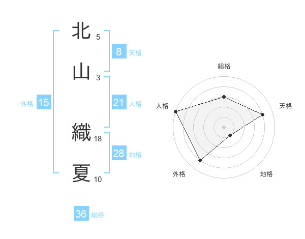 北山 織夏さんの天格は8画の4点!
