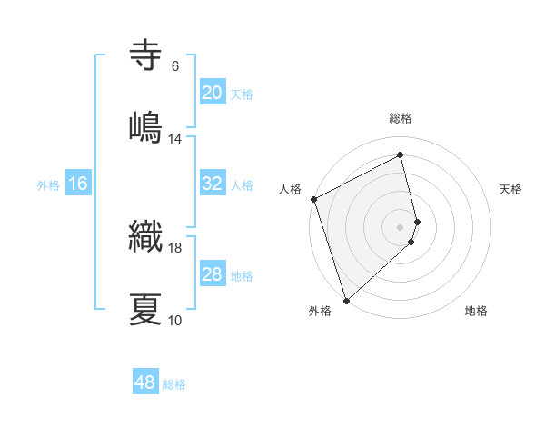 寺嶋 織夏さんを姓名の画数から五運を鑑定