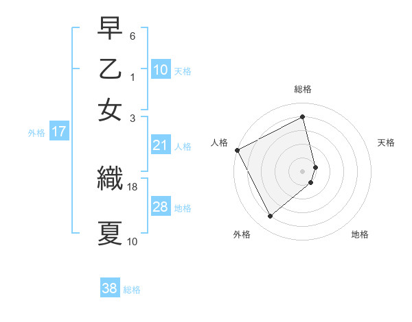早乙女 織夏さんを姓名の画数から五運を鑑定