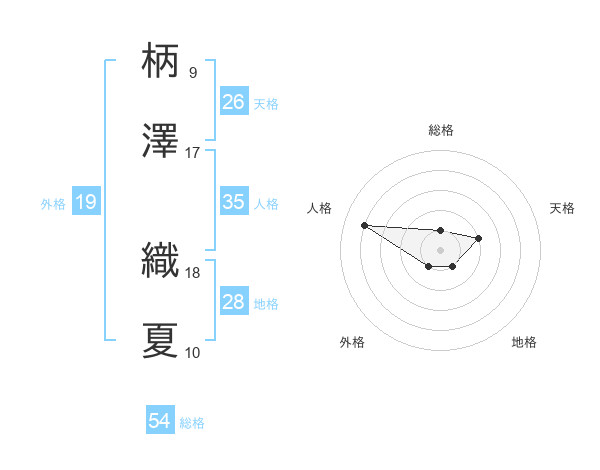 柄澤 織夏さんを姓名の画数から五運を鑑定