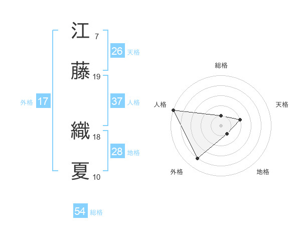 江藤 織夏さんを姓名の画数から五運を鑑定
