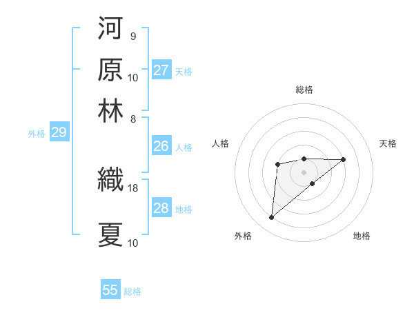 河原林 織夏さんの総格は55画の1点!