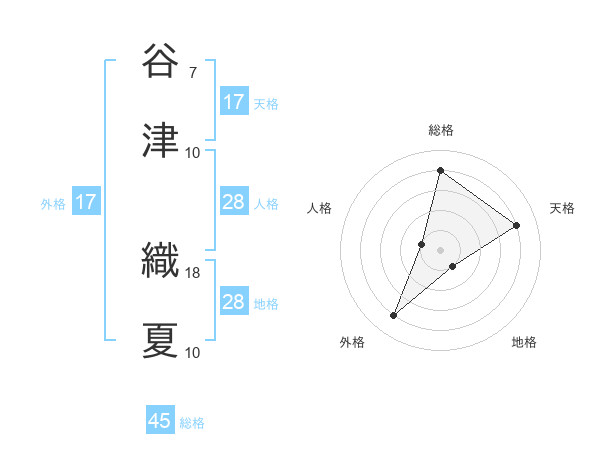 谷津 織夏さんを姓名の画数から五運を鑑定