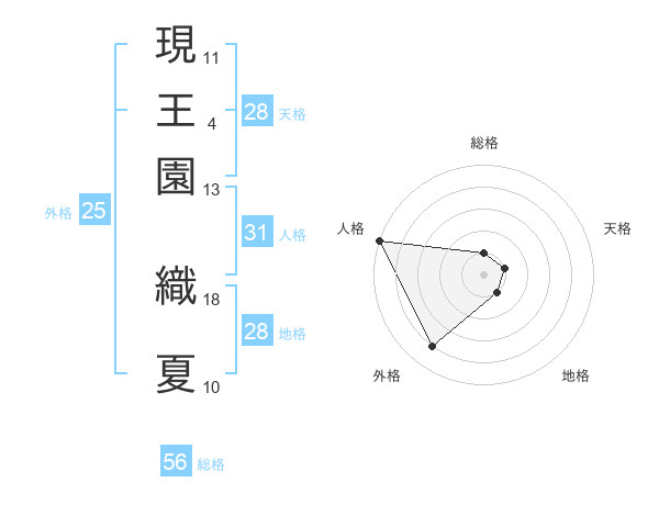 現王園 織夏さんを姓名の画数から五運を鑑定
