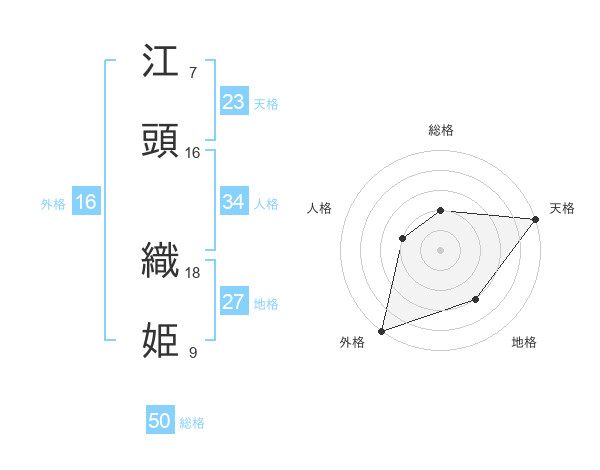 江頭 織姫さんを姓名の画数から五運を鑑定