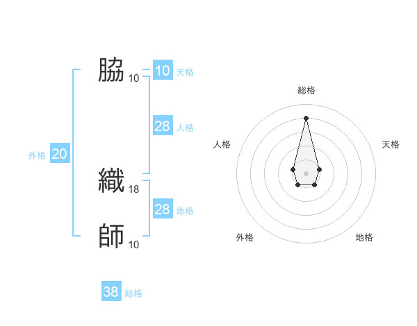 脇 織師さんの総格は38画の4点!
