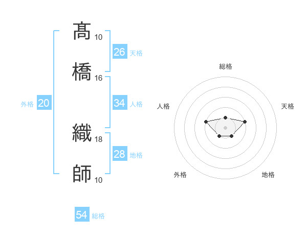 髙橋 織師さんを姓名の画数から五運を鑑定