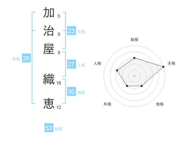 加治屋 織恵さんを姓名の画数から五運を鑑定