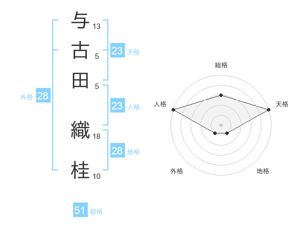 与古田 織桂さんを姓名の画数から五運を鑑定