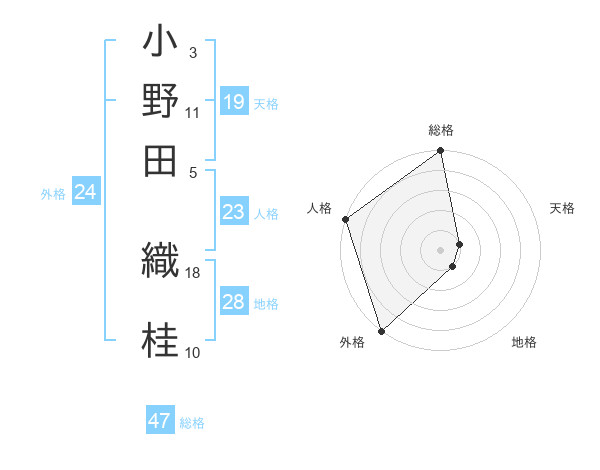 小野田 織桂さんを姓名の画数から五運を鑑定