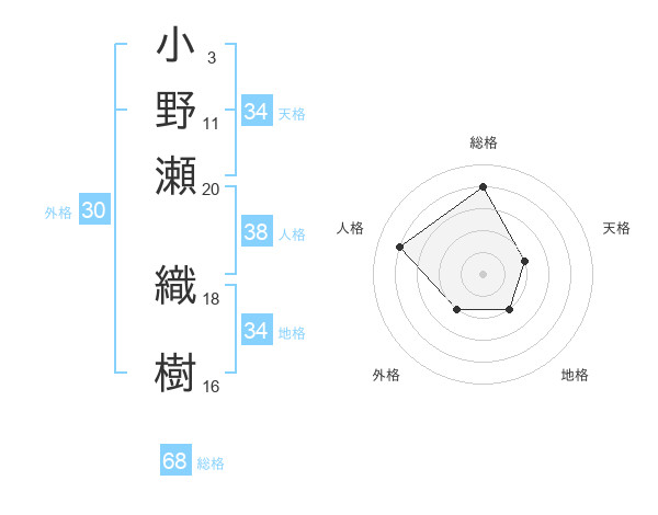 小野瀬 織樹さんを姓名の画数から五運を鑑定