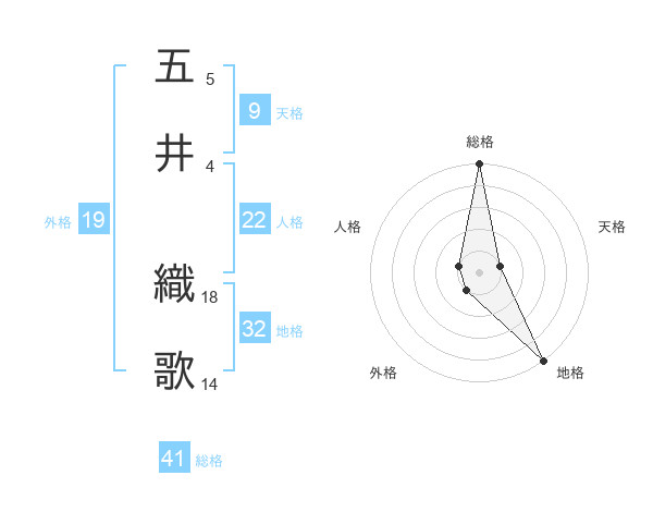 五井 織歌さんの総格は41画の5点!