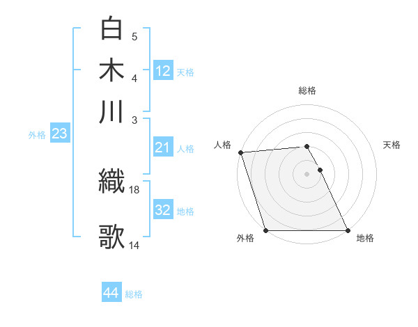 白木川 織歌さんを姓名の画数から五運を鑑定