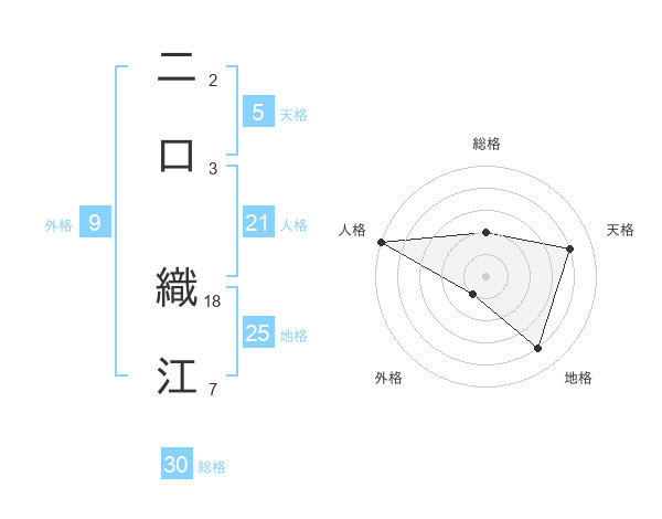 二口 織江さんの総格は30画の2点!