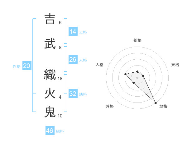 吉武 織火鬼さんを姓名の画数から五運を鑑定