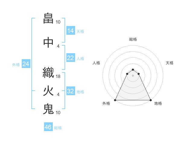 畠中 織火鬼さんの外格は24画の5点!